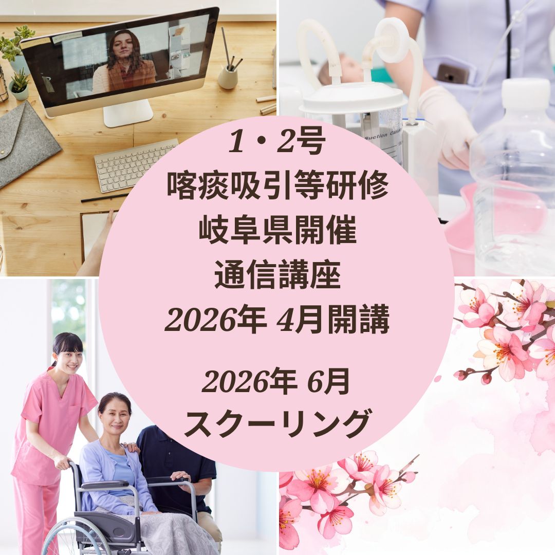 【岐阜】喀痰吸引等研修1・2号通信講座(オンライン)開催最新情報(4月〜)