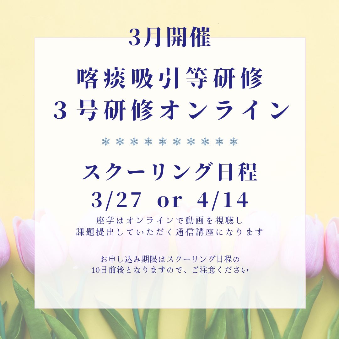 喀痰吸引等研修3号研修の通信講座(オンライン)の開催が決定しました!